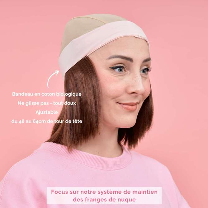 Transformez votre apparence avec la couronne Caroline, une solution capillaire sophistiquée alliant style et confort. Cette coupe carré auburn aux reflets chauds valorise instantanément votre teint et s'adapte à tous les visages. Conçue en fibre synthétique japonaise premium, elle offre l'aspect et la douceur des cheveux naturels tout en résistant à la chaleur jusqu'à 180 °C. La bande ajustable en coton bio rose poudré (47-64 cm) garantit un maintien sécurisé et agréable, convenant à toute la famille. Pratique et polyvalente, elle se combine harmonieusement avec turbans, foulards et accessoires textiles pour créer des looks variés. Une alternative naturelle et confortable à la perruque traditionnelle.