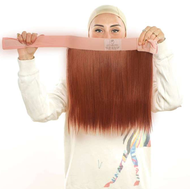 La couronne de cheveux mi-longue Emma peut s'associer à la frange pour le front Sophia (frange rideau) pour un tour de tête complet.