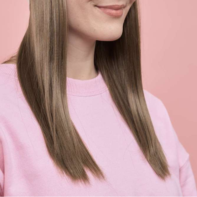 La couronne de cheveux mi longue Ilana peut s'associer à la frange pour le front Marie (frange rideau) pour un tour de tête complet.