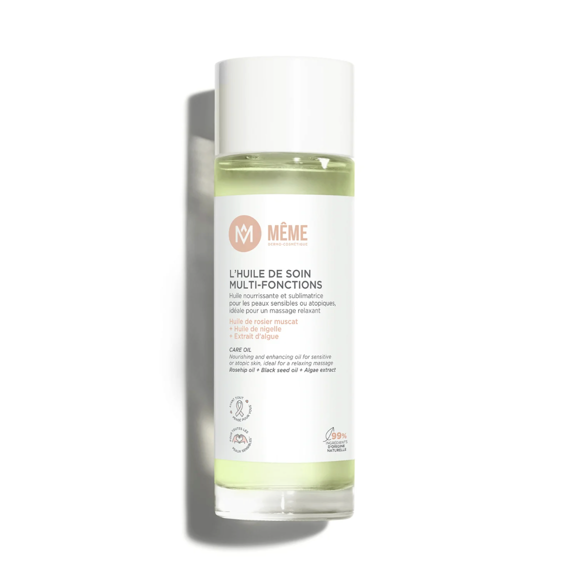 Véritable couteau suisse, l’huile de soin nourrit toutes les zones, sans effet gras : le visage, les cheveux et bien sûr tout le corps.