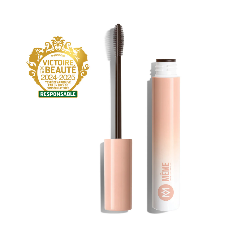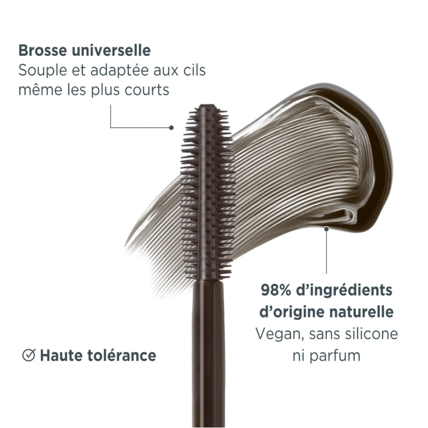 Mascara brun-noir à la formule protectrice pour une croissance saine des cils, adapté aux yeux sensibles et aux cils fragiles, même les plus courts.
