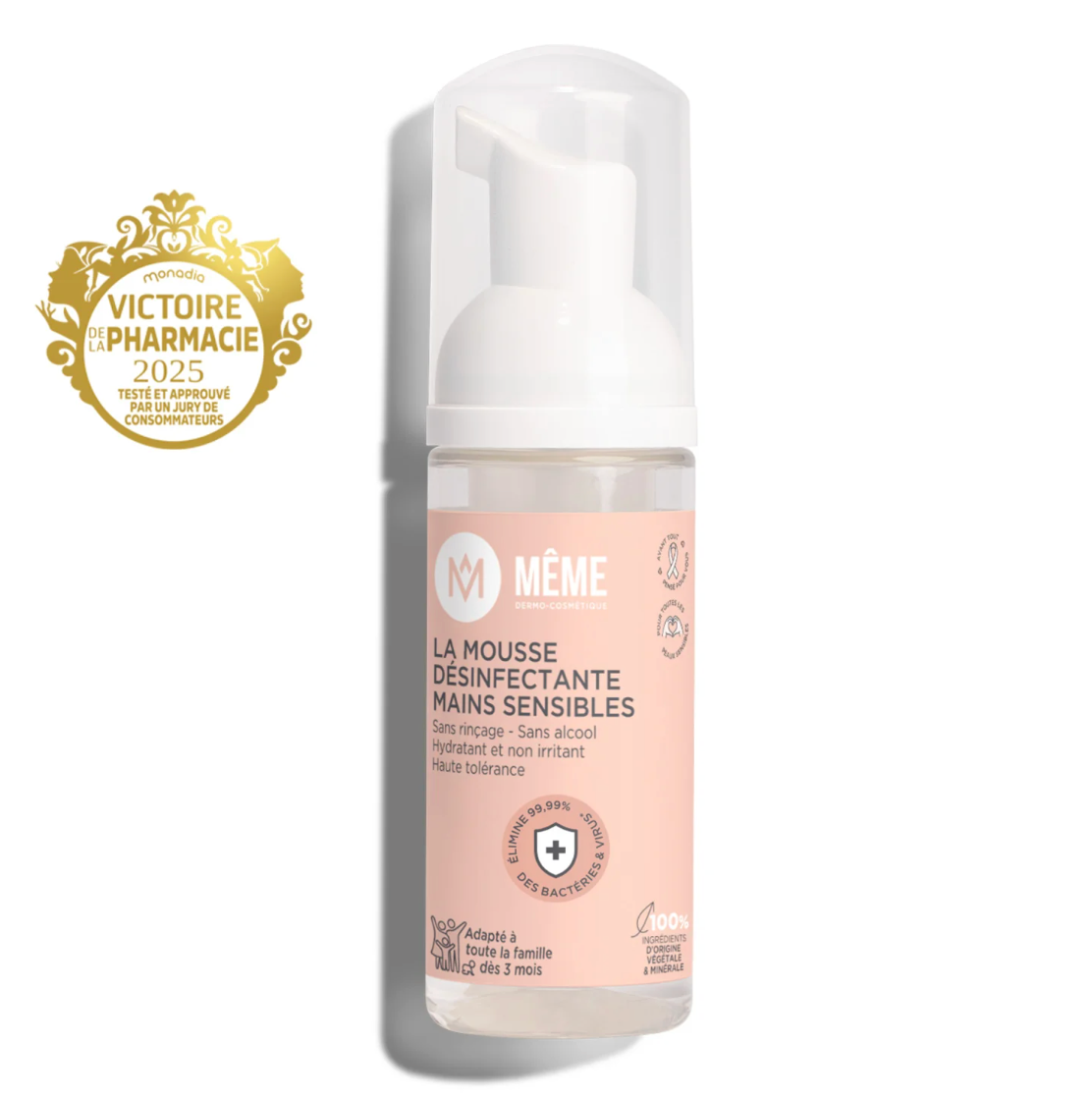 Sans alcool, la mousse désinfectante désinfecte rapidement et efficacement les mains sensibles et réactives de toute la famille, pour les enfants dès 3 mois. Sans rinçage, la mousse désinfectante n’assèche pas les mains, laisse la peau hydratée et douce, ne colle pas, n’irrite pas et n’abîme pas le vernis à ongles.