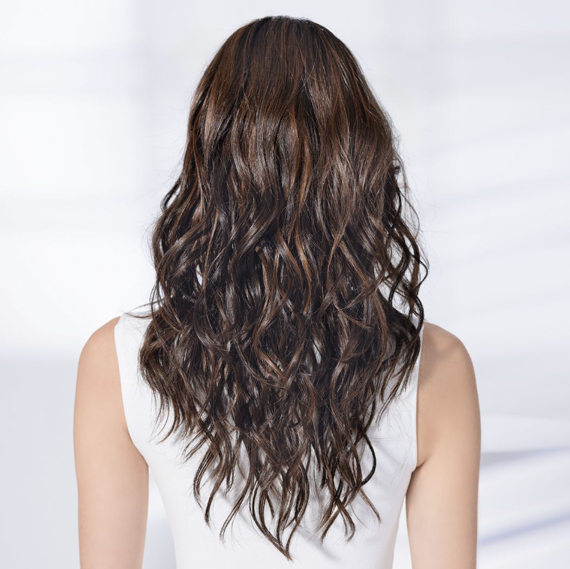 Présentée sur le mannequin en toffeeblonde rooted et en darkchocolate rooted.