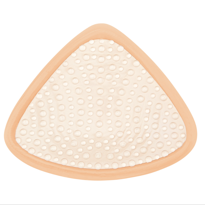 Prothèse mammaire externe Amoena modèle 2S en teinte chair, dotée d'une forme triangulaire symétrique adaptable à gauche comme à droite. Son galbe moyen et son absence d'extension sous l'aisselle garantissent discrétion et confort au quotidien. La technologie Comfort + régule efficacement la chaleur et l'humidité pour une sensation de bien-être durable. Grâce à sa face interne adhérente, elle s'ajuste délicatement à votre morphologie, soulageant les tensions cervicales et dorsales tout en restituant une mobilité naturelle. Vous bénéficiez d'une plus grande liberté dans le choix de vos vêtements. Inclus : kit d'entretien avec brosse douce et nettoyant spécialisé pour préserver votre prothèse.