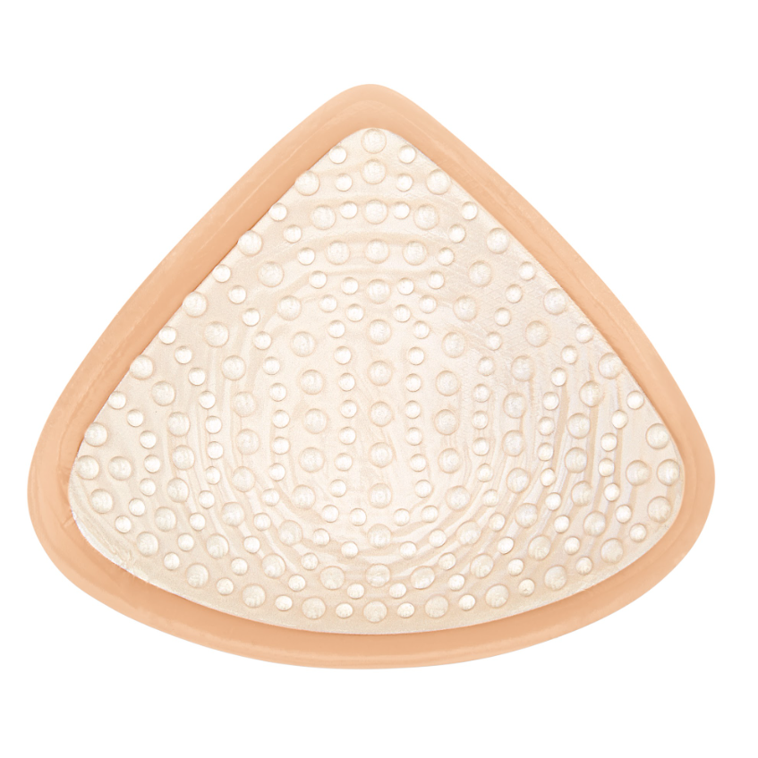 Prothèse mammaire externe Amoena 3S en teinte chair, conçue pour offrir un confort optimal au quotidien. Son galbe profond et sa forme symétrique s'adaptent indifféremment au côté gauche ou droit, tandis que sa structure triangulaire épouse naturellement la silhouette sans déborder sous l'aisselle. La technologie Comfort + régule la température et limite la transpiration, tandis que la face de contact adhérente épouse les mouvements du corps comme un sein naturel. Cette adhérence directe à la paroi thoracique soulage considérablement les tensions au niveau des épaules et du cou. Vous bénéficiez d'une plus grande liberté vestimentaire et d'une sensation de bien-être durable. Le kit d'entretien fourni, composé d'une brosse douce et d'un nettoyant spécialisé, garantit la longévité de votre prothèse.