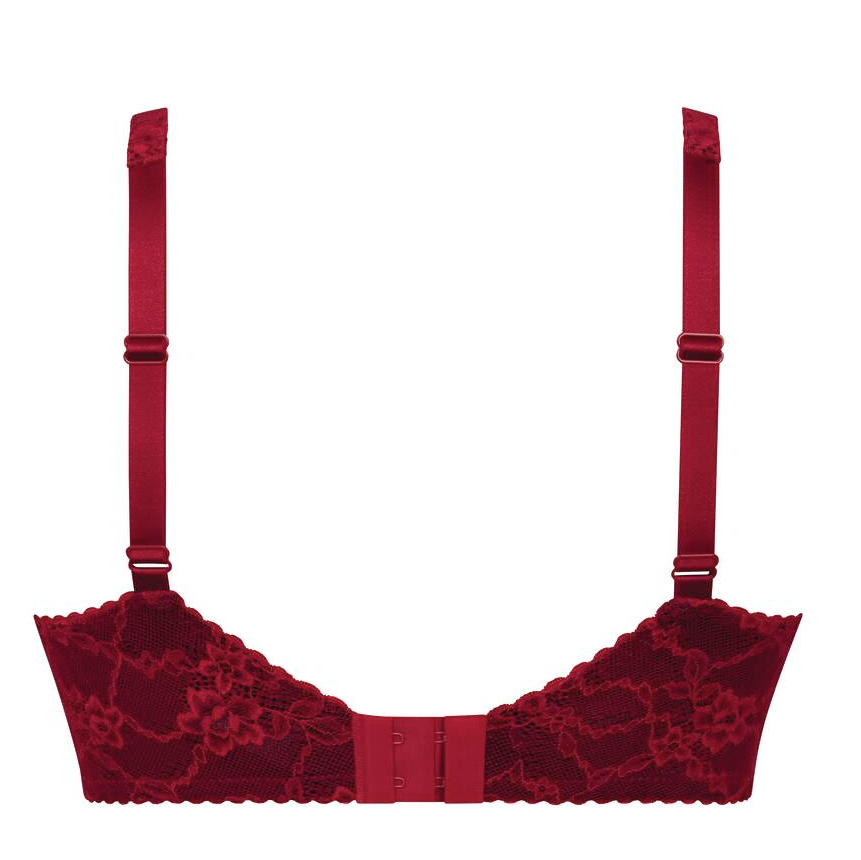 Ce soutien-gorge en dentelle raffinée possède un bonnet en trois parties. La dentelle est élastique sur le haut du bonnet, elle est renforcée par un tulle délicat ainsi qu'un ruban de décolleté doux.